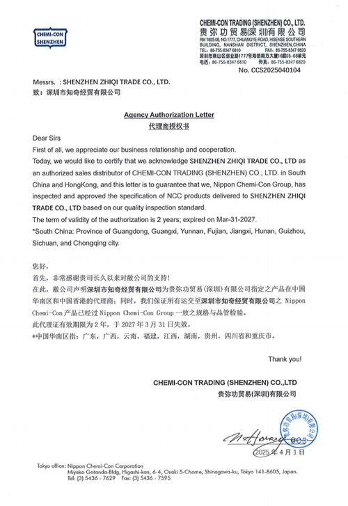 根據公開信息,國內有幾家公司代理NCC(Nippon Chemi-con,日本貴彌功,俗稱“黑金剛”)電容 深圳市亞澤科技有限公...